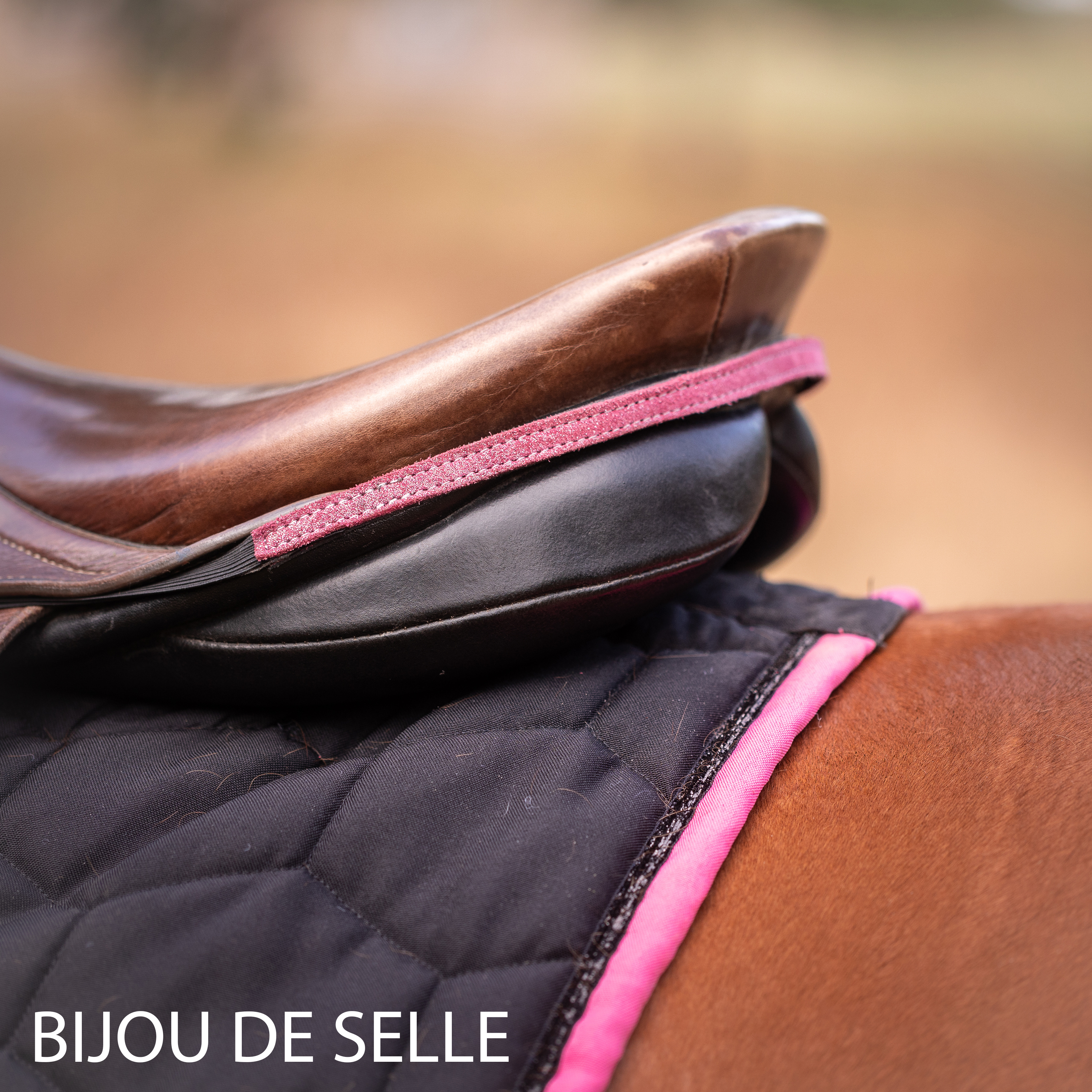 Frontaux scintillants, bijoux de selle délicats, cuirs métallisés ou pailletés, et petites merveilles textiles : tout est imaginé pour sublimer votre quotidien au pas, au trot ou au galop.